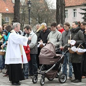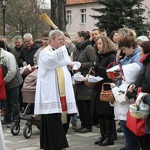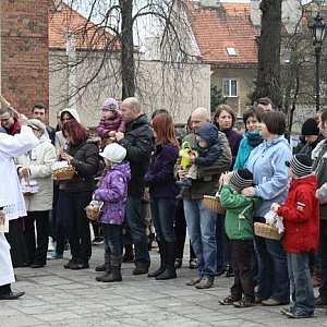 Jak tradycja nakazuje w przeddzień święta, w kościołach kapłani święcili koszyczki wypełnione pisankami, wędliną, pieczywem, solą i ciastem. Przed kościołem Św. Jana w Lesznie, przyniesione pokarmy święcił Władysław Marzęcki - proboszcz parafii. Niestety niska temperatura sprawiła, że opustoszały parki i Aleja 21 Października, ulubione miejsce spaceów mieszkańców Leszna. Wielu z nich odwiedziło groby najbliższych na cmentarzu parafialnym, by złożyć świąteczne stroiki i zapalić znicze.