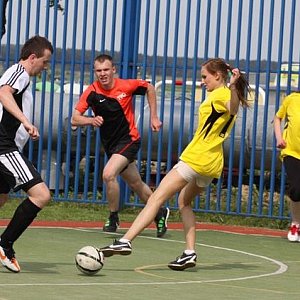 Pierwszego gola wbili panowie, ale później gra się wyrównała. Końcowka meczu należała do płci pięknej, która przy ogłuszajacym dopingu koleżanek i kolegów najpierw wyrównała, a później strzeliła dwa zwycięskie gole.