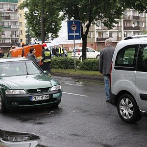 Przed godz. 9 na ul. Grunwaldzkiej przy zjeździe do wieżowców kierujący fiatem seicento uderzył w fiata doblo. Pojazdami kierowali leszczynianie.