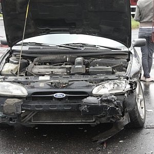 Przed południem na Al. Konstytucji 3 Maja przy skręcie w ul. Kiepury zderzyły się volkswagen polo i ford mondeo. Dwie osoby odwieziono na badania do szpitala.