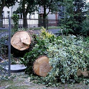 Strażacy mieli pełne ręce roboty. Do akcji wysłano dwa zastępy straży pożarnej oraz samochody ratownictwa technicznego, wyposażone w szereg narzędzi hydraulicznych. Drzewo pocięto na mniejsze kawałki, później przy pomocy żurawia przeniesiono kloce na pobocze, aby nie blokowały wjazdu na posesję.