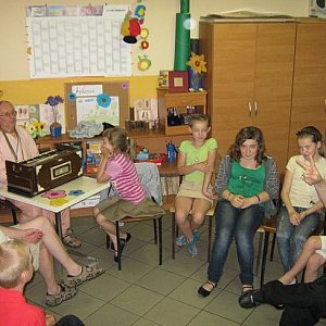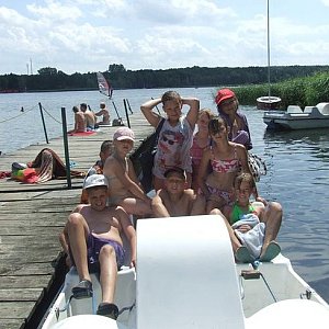 Dla 12 członkowie Klubu Młodych Odkrywców opiekunowie, Katarzyna Wojciechowska, Joanna Starosta i Krzysztof Kubiak, przygotowali bogatu program zajęć. Były turnieje sportowe, wycieczki po okolicy z kijkami, codzienne rejsy łodzią po jeziorze, kąpiele wodne, karaoke, ogniska z pieczeniem kiełbasek, a na zakonczenie dyskoteka.