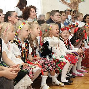 Wszyscy zebrani gromkimi oklaskami nagrodzili występ nie tylko młodych artystów, zespół tańca ludowego ale również autorki programu, panie nauczycielki, Julitę Walczak,Monikę Warchalewską i Beatę Swojak.