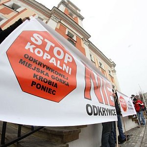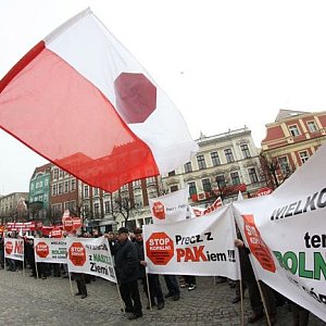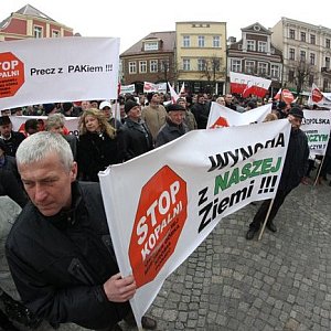 Rolnicy z całego regionu protestowali w czwartek na rynku w Lesznie przeciw kopalni węgla brunatnego, która ma powstać w okolicach Krobi i Miejskiej Górki.