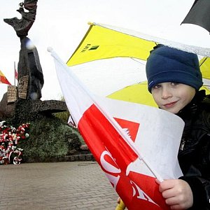 W strugach deszczy świętowano w Lesznie 222 rocznicę uchwalenia Konstytucji 3 Maja. Mimo złej pogody pod pomnik przyszło sporo osób, w tym młodzież ze wszystkich szkół oraz zuchy i harcerze.