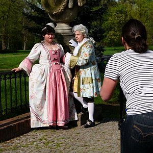 Wczoraj dworzanie przechadzali się po rydzyńskim parku i zamku, dając okazję do robienia w ich towarzystwie pamiątkowych zdjęć. Na zamkowym dziedzińcu przygotowano także sporo atrakcyjnych zabaw dla dzieci.