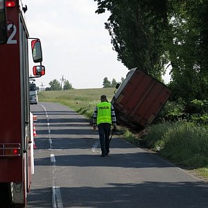 Ciągnik siodłowy wraz z naczepą zjechała na pobocze i utknął w rowie. Kierującemu pojazdem obywatelowi Litwy nic się nie stało.