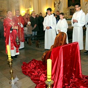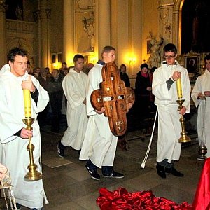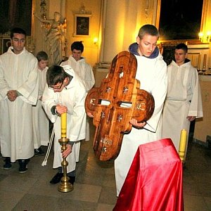 Wprowadzenie krzyża do kościoła odbyło się w sobotę wieczorem. Specjalne msze z nieszporami odbywać się będą od poniedziałku do piątku o godz. 17. W sobotę krzyż zostanie przekazany do Osiecznej.