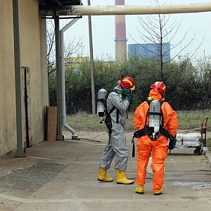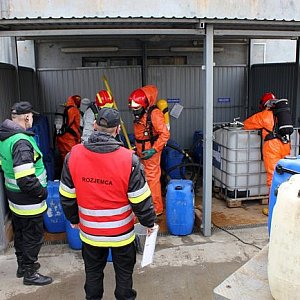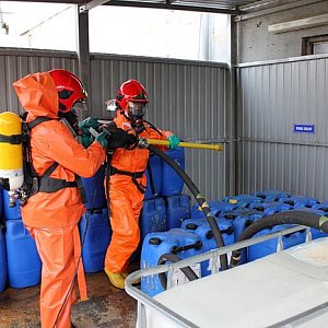 Specjalistyczna Grupa Chemiczno-Ekologiczna leszczyńskiej straży pożarnej na terenie firmy LOB przeprowadziła wczoraj ćwiczenia, których scenariusz zakładał rozlanie się kwasu solnego.