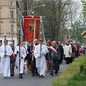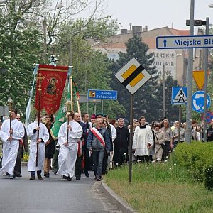 O godz. 10 w kościele św. Jana odbyła się uroczysta msza dziękczynna za kanonizację Papieża. Po niej wszyscy przeszli pod budynek przedszkola przy ul. Mickiewicza, gdzie biskup Grzegorz Balcerek poświęcił tablicę z imieniem patrona placówki - świętego Jana Pawła II. Harcerze nieśli relikwie z krwi Karola Wojtyły. Odśpiewano także Barkę, ulubioną pieśń Papieża.
