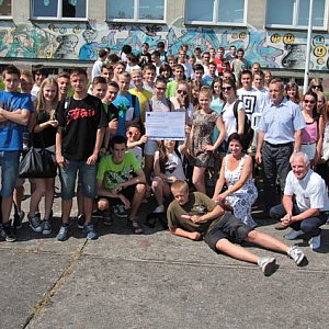 Z nagrodą przybyli do gimnazjum Barbara Mroczkowska, radna, przewodnicząca Komisji Kultury i Sportu, Krystian Maćkowiak, radny RM i Antoni Neczyński, redaktor naczelny "ABC". Podczas krótkiego spotkania z młodzieżą wręczyli czek na 5000 zł i pogratulowali uczniiom, że tak chętnie przyjeżdżają do szkoły rowerami.