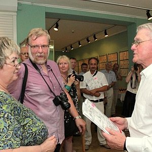 Podczas uroczystości otwarcia Lech Woźny, prezes Koła Polskiego Związku Filatelistów w Lesznie i Witold Omieczyński, dyrektor Muzeum Okręgowego serdecznie powitali Edmunda Jankowskiego - honorowego prezesa Koła PZF w Lesznie, Adelę Dankowską - utytułowaną szybowniczkę i Józefa Młocka - pilota.