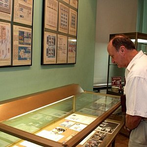 Natomiast w gablotach można zobaczyć projekty, walory, medale, dyplomy i puchary zdobyte na wystawach nie tylko krajowych, ale również światowych.