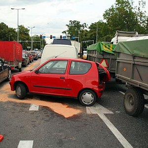 Zdarzenie, które miało miejsce około godz. 15:30 zostanie zakwalifikowane prawdopodobnie jako kolizja. Prędkość pojazdów była niewielka, obrażeń doznała kierująca seicentio, ktora o wypadku sama powiadomiła swoich najblioższych.