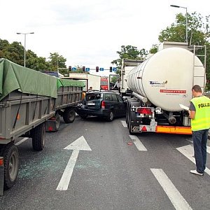 Sprawcą karambolu jest prawdopodobnie kierowca zjeżdżającego z wiaduktu ciągnika rolniczego z dwoma ciężkimi przyczepami. Zarzuciło go i przyczepy zaczęły uciekać mu na boki.