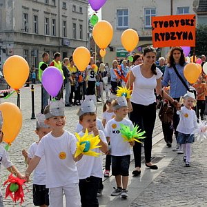Po odśpiewaniu Hymnu Przedszkolaka do nieba poszybowały różnobarwne baloniki, unosząc kartki z dziecięcymi marzeniami. Następnie barwny i rozśpiewany dziecięcy korowód przemaszerował po halę sportową, gdzie rozpoczął się festyn.