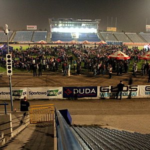 Po spotkaniu na specjalnie rozstawionej scenie pojawili się muzycy. Oczekiwanie na przyjazd ekipy Fogo Unii Leszno umilał zespół AfterSeven.