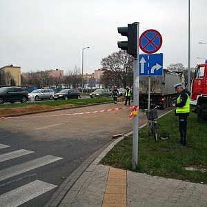 Pierwsze informacje mówiły o tym, że rowerzystka wtargnęła przed ciągnik siodłowy z naczepą. Samochód gwałtownie hamował i doszło w nim do przesunięcia, a w konsekwencji wysypania ładunku.