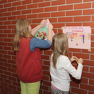 Po odśpiewaniu piosenki "Dziećmi jesteśmy tylko raz" wszyscy rozeszli się do swoich klas, w których wykonywali gazetki na temat Praw Dziecka. Prace te wystawione zostały na drzwiach wyznaczonych sal i ścianach korytarzy.