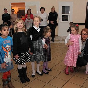 Podczas kolejnego bloku tanecznego niespodziewanie na sali pojawił się Mikołaj, który powitany został gromkimi oklaskami. Obdarował on wszystkie dzieci słodką świąteczną paczką.