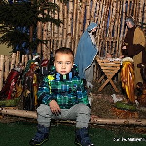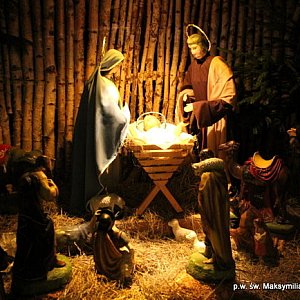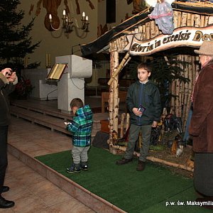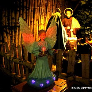 Współczesna szopka w kościele św.Maksymiliana Marii Kolbego w Gronowie, ma ruchome figurki zakonników i aniołka-skarbonkę. Podczas naszych odwiedzin proboszcz ks. kanonik Mieczysław Jarczewski rozdawał najmłodszym parafianom słodkie prezenty.