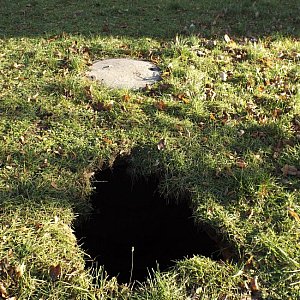 Głęboka na około 3 metry dziura czyha na nieuważnych spacerowiczów między blokami przy ulicy Grunwaldzkiej w Lesznie! Dlaczego ziemia się zapadła? Przez rurę wodno-kanalizacyjną, która znajduje się w tym miejscu.