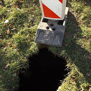 Dziura prawdopodobnie powstała w wyniku zapadnięcia się rury (elementu systemu wodno-kanalizacyjnego), a następnie osunięcia ziemi, która wpadła do systemu kanalizacji. Jama ma ok. trzy metry głębokości i sporą średnicę. Bez problemu zmieści się tam człowiek. Istnieje ryzyko, że ubytek może jeszcze się powiększyć.