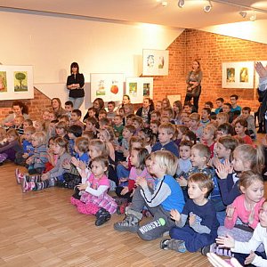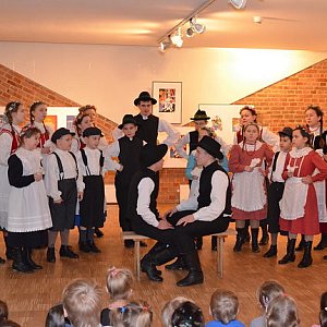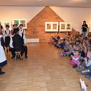 Szkolny Zespół Regionalny i Kapela Dudziarska Miglance uświetniła dzisiaj w Galerii w Ratuszu wernisaż ilustracji „Tam za dworem, za jeziorem”.