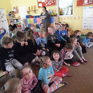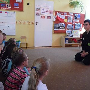 Pan Szymon przybliżył dzieciom pracę strażaka. Maluchy utrwaliły sobie wiedzę o numerach alarmowych, rozmawiały też o tym, w jakich sytuacjach należy nich korzystać.