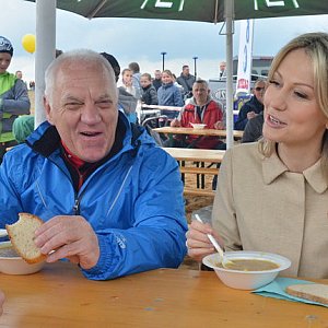 Na mecie Majówki z ABC, nad Zbiornikiem w Rydzynie, pojawiła się Magdalena Ogórek, kandydatka na prezydenta popierana przez SLD. Miała krótką konferencję prasową, spacerowała wśród uczestników naszego rajdu, spróbowała też grochówki.