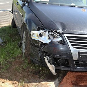 21-latek, zmieniając pas ruchu, doprowadził do zepchnięcia osobówki jadącej na pasie ruchu obok. Na skutek uderzenia passat obrócił się, wypadł z drogi, a następnie uderzył w ogrodzenie na pasie zieleni rozdzielającym kierunki ruchu.