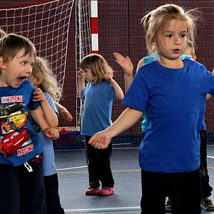 Przedszkolaki z grup Biedronki, Pszczółki, Misie, Jagódki i Skrzaty rywalizowali nie tylko w konkurencjach sportowych ale również tanecznych. Każda z grup zaprezentowała na parkiecie swój układ taneczny ZUMBY.