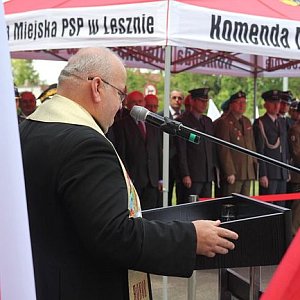 Do miasta zjechali strażacy z powiatów kościańskiego, gostyńskiego, grodziskiego, jarocińskiego, kępińskiego, krotoszyńskiego, nowotomyskiego i szamotulskiego. Komendant miejski PSP w Lesznie Robert Baran przypomniał historię straży pożarnej w Lesznie oraz nawiązał do przypadającego właśnie dwudziestolecia powołania Krajowego Systemu Ratowniczo-Gaśniczego.