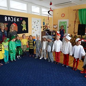 Występ młodych aktorów przebranych za żabki, bociany, pszczółki, zajączki i żuczki bardzo się podobał zaproszonym gościom, jeszcze do niedawna również przedszkolakom.