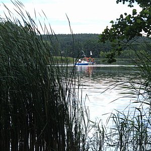Po godzinie 20 na jeziorze pojawiły się łodzie, z których puszczono na wodę wianki.