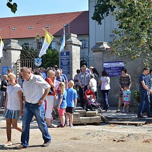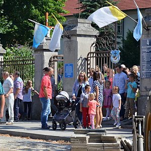 Przed rozpoczęciem Sumy Odpustowej na dziedzińcu Klasztoru Ojców Franciszkanow odslonięto tablicę upamiętniającą 16 kobiet zmarłych podczas okupacji w więzieniu, jakie mieściło się w klasztorze.