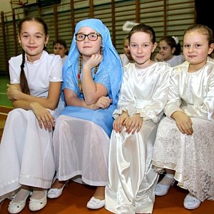 Następnie na parkiecie sali pojawili się młodzi aktorzy, którzy przedstawili Jasełka przygotowane przez nauczycielki Danielę Patelkę i Annę Kasińską.