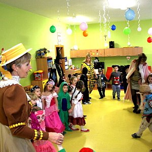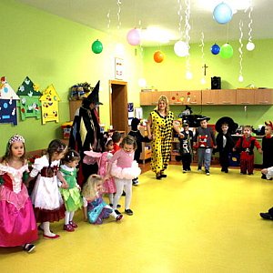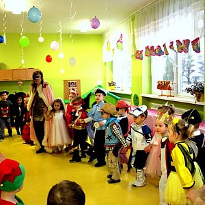 Dzieci z grup Misie i Pszczółki przybyły na balik w różnych przebraniach. W stylowych strojach wystąpiły Irena Knuła, dyrektor przedszkola i nauczycielki Małgorzata Zaręba i Halina Lisiak, które przygotowały wiele ciekawych i wesołych konkursów. Dzieci rywalizowały m.in. w wyścigu na dmuchanych osiołkach, zbieraniu kolorowych kulek i wyścigu taczek. Przerywnikiem pomiędzy konkursami były pląsy i tańce, w rytm nie tylko dziecięcych przebojów.