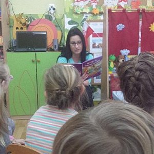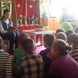 9 marca grupę starszą "Kotki" odwiedzili uczniowie klasy Vb ze Szkoły Podstawowej w Rydzynie z wychowawczynią Lucyną Borowiak. Młodzież przedstawiła dzieciom ulubione opowiadania i wiersze, nie tylko swoje, ale i swoich rodziców. Niektóre książki miały nawet 40 lat, ale wciąż były bliskie sercu rodziców i ich dzieci.