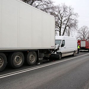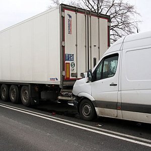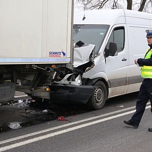 CIągnik siodłowy z naczepą prowadzony przez obywatela Ukrainy prawdopodobnie zatrzymał się przed innym pojazdem, ktory zamierzał skręcić w boczną ulicę. Zbyt późno zauważył to kierowca mercedesa sprintera na głogowskich tablicach rejestracyjnych i wjechał w tył TIR-a. Przód sprintera został uszkodzony.