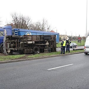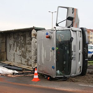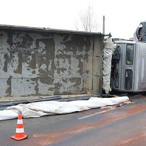 Przewróciła się ciężarówka przewożąca geowłókninę (zdjęcia)