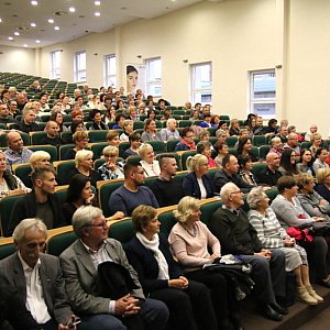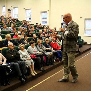 Spora grupa osób przybyła do auli Wyższej Szkoły Humanistycznej w Lesznie na spotkanie z profesorem Siergiejem Batieczko, by dowiedzieć się jak obniżyć swój wiek biologiczny.