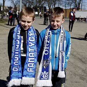 Wielu kibiców zjawiło się przed stadionem na długo przed otwarciem jego bram. Z szalikami na ramionach, w czapeczkach i w bluzach z logo swojego ukochanego klubu.