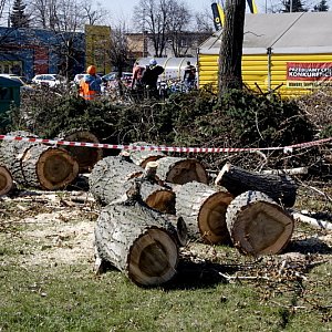 Kolejne drzewa zniknęły z krajobrazu miasta Leszna. Tym razem wycięto okazałe drzewa rosnące przy Centrum Handlowym Nasze Leszno przy ul. Narutowicza.