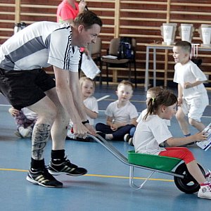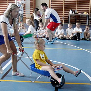 Przed rozpoczęciem konkurencji, w których startowali nie tylko przedszkolacy, ale również ich rodzice, wszyscy na rozgrzewkę zatańczyli zumbę. Pomiędzy kolejnymi konkurencjami, które zapowiadała nauczycielka Grażyna Skrzypaczak, dzieci z poszczególnych grup dedykowały rodzicom przygotowane piosenki i tańce.