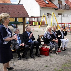 W uroczystym otwarciu placu uczestniczyli prezydent Łukasz Borowiak, naczelnik Wydziału Edukacji Lucjan Rosiak, dyrektor przedszkola Maria Grobecka, przedstawiciele rodziców Małgorzata Michalak, Natalia Klemczak i Anna Nowicka oraz przedszkolaki.