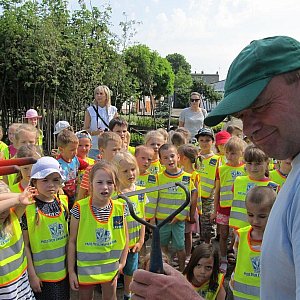 Ogrodnik prowadził z dziećmi dialog, zadawał pytania. Przedszkolaki poznały wiele ciekawostek, m. in. taką, że żółty pyłek, który od kilku dni zalega na ulicach, to pyłek sosny, a roślina zwana komarzycą wcale nie odpędza komarów.