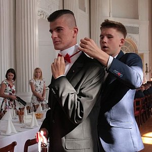 Bal gimnazjalistów rozpoczął się polonezem, który z dumą obserwowali nie tylko nauczyciele, ale także rodzice. Trzeba dodać, że stroje uczniów wyróżniały czerwone elementy. W przypadku dziewcząt były to róże przy nadgarstkach. Wszyscy chłopcy mieli czerwone muszki. Po minach młodzieży było widać, że jest stremowana. Po ostatnim takcie poloneza wszyscy wrzucili na luz i zaczęła się zabawa.