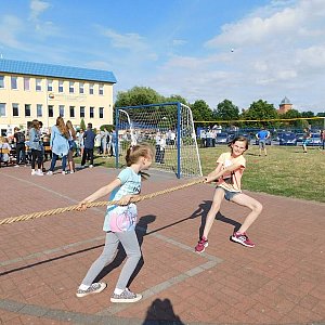 Na boisku szkolnym zorganizowano kilka konkursów, które miały pokazać różnorodne talenty uczniów.