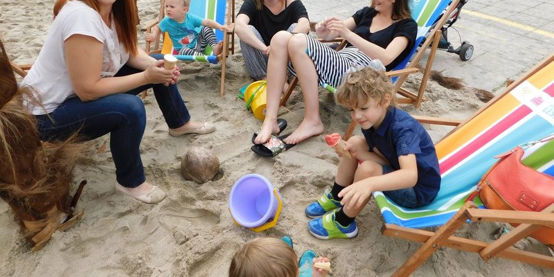 Hitem Rynków Śniadaniowych była plaża, na której były palmy i leżaki. Wypoczywali tam dorośli i dzieci.